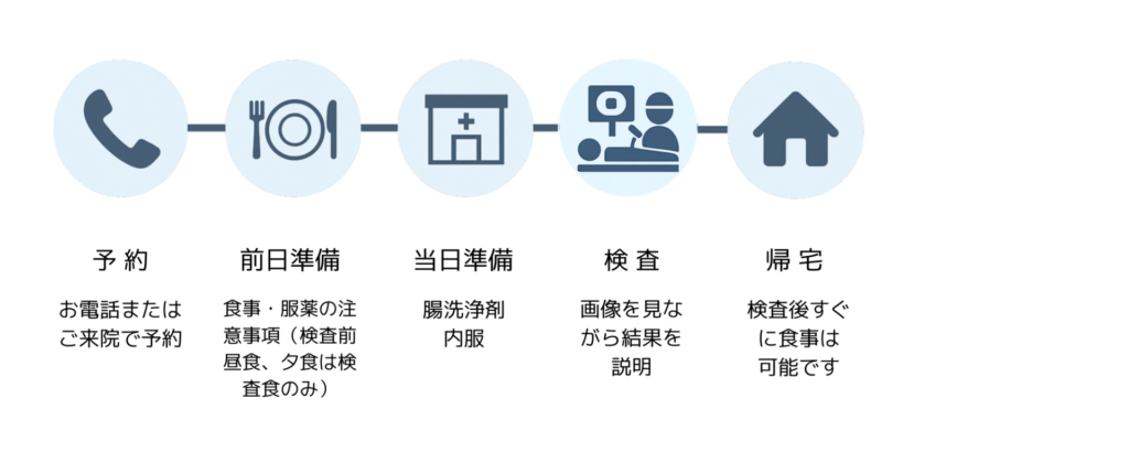 大腸カメラ検査は、予約後、前々日までにご来院いただく必要があります。