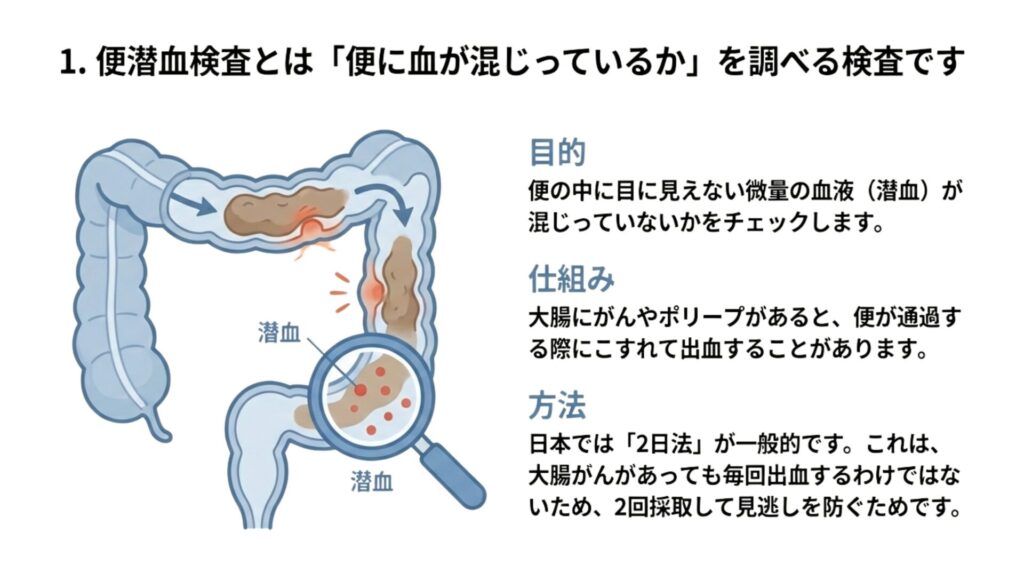 1. 便潜血検査とは「便に血が混じっているかを調べる検査」