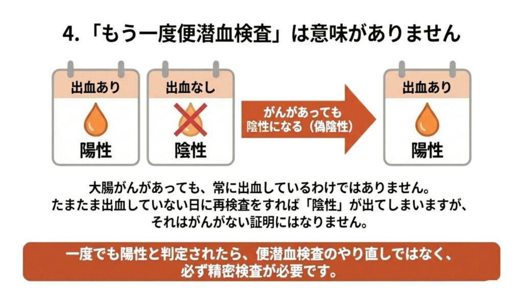 4. 「もう一度便潜血検査」は意味がない