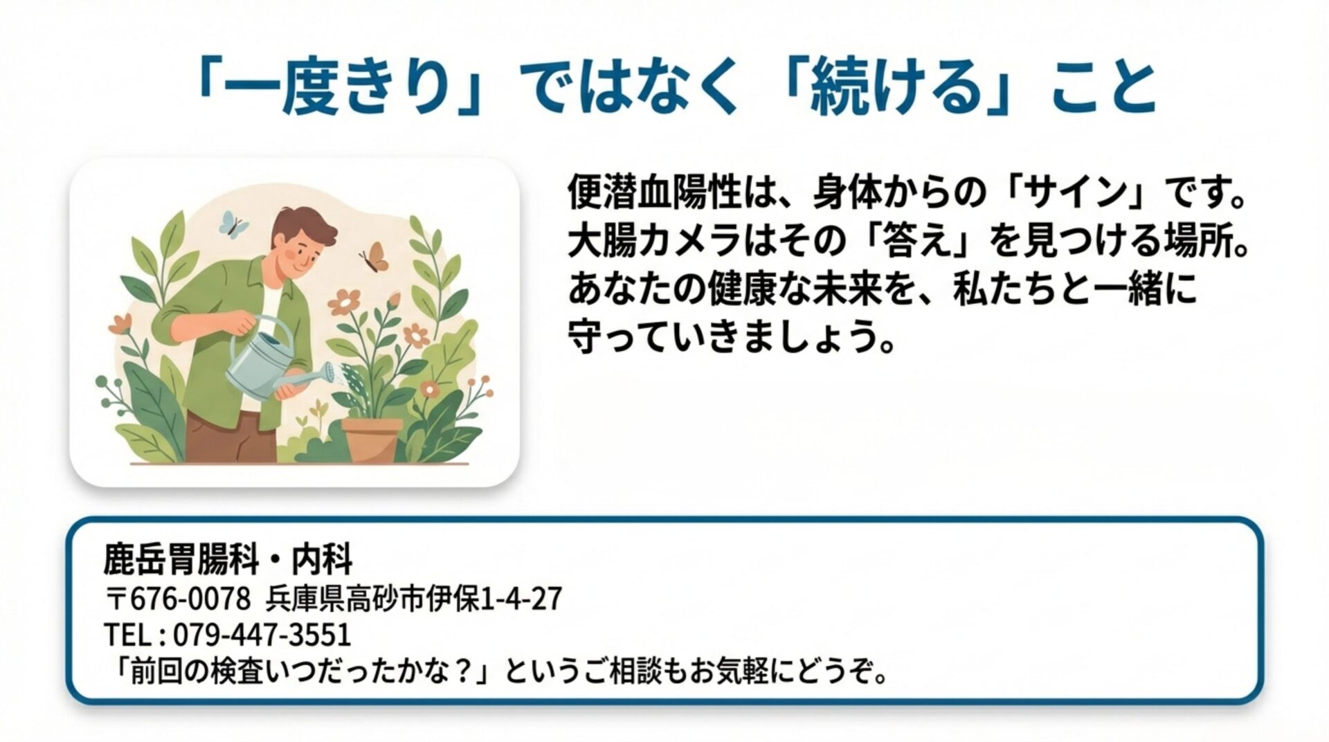 便潜血陽性は、「いま調べるべき」という身体からのサインです。