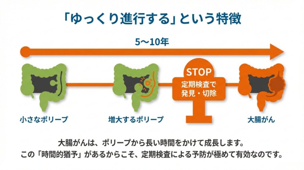 これが、大腸がんが「予防できるがん」と言われる理由です。